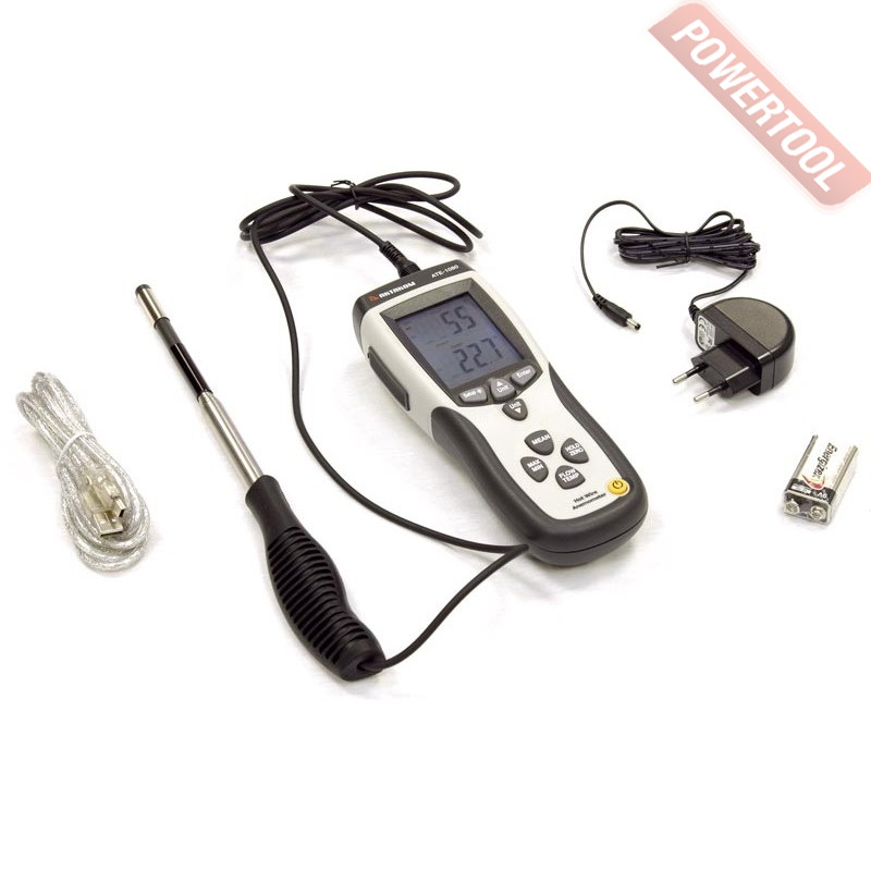 Анемометр с обогреваемой струной АКТАКОМ АТЕ-1080 - работает по принципу охлаждения воздушным потоком нагретой нити. В приборе использован выносной датчик — миниатюрный стеклянный термистор. Может применяться для измерения параметров воздушного потока, как на вентиляционных решетках, так и непосредственно в воздуховодах.