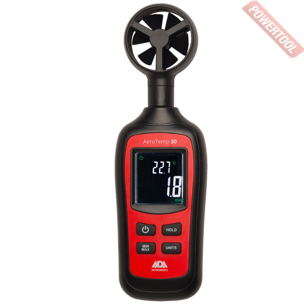 - Анемометр с крыльчаткой ADA AeroTemp применяется для измерения скорости воздуха и его температуры. Прибор идеален для применения на станциях наблюдения за окружающей средой, для проверки вентиляции, кондиционирования воздуха, в парусном и авиационном и парашютном спорте. Анемометр ADA AeroTemp компактный и легкий в управлении прибор