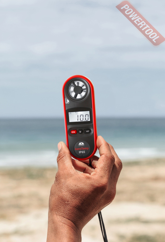 Анемометр с термодатчиком ADA AeroTemp IP65 - компактный прибор для одновременного измерения скорости потока и температуры воздуха с повышенным уровнем пылевлагозащиты IP 65. Анемометр не боится песка и пыли, его можно мыть под струей воды. Благодаря встроенной крыльчатке анемометр ADA AeroTemp IP65 обеспечивает непрерывное измерение скорости воздушного потока. Этот компактный переносной прибор легко помещается в кармане. Его размеры 126×47×21мм. ADA AeroTemp IP 65 подходит для работ с системами вентиляции и кондиционирования. ADA AeroTemp IP 65 идеально подходит для любителей экстремальных видов спорта.
