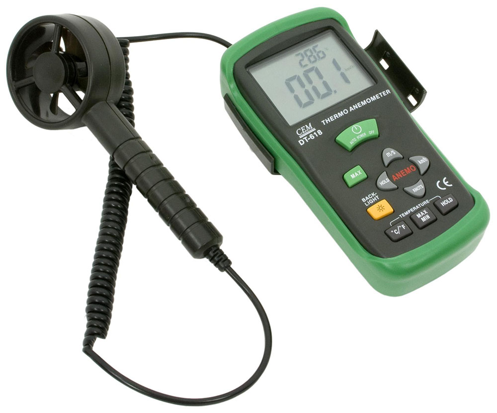 Анемометр с термодатчиком CEM DT-618 предназначен для измерения скорости потока и температуры воздуха. Прибор применяется для измерения скорости движения газов, воздуха в системах, например, вентиляции. В метеорологии применяется для измерения скорости ветра. Благодаря встроенной крыльчатке прибор идеально подходит для быстрых точечных замеров на выходах воздуховодов. Также возможен расчет среднего значения измерений. Очень удобный, компактный и легкий в управлении прибор.