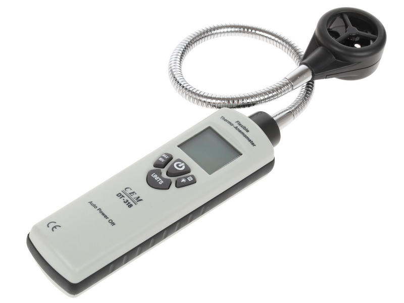 Анемометр с термодатчиком и гибким зондом CEM DT-318 предназначен для измерения скорости потока и температуры воздуха. Прибор применяется для измерения скорости движения газов, воздуха в системах, например, вентиляции. В метеорологии применяется для измерения скорости ветра. Благодаря встроенной крыльчатке прибор идеально подходит для быстрых точечных замеров на выходах воздуховодов. Также возможен расчет среднего значения измерений. Очень удобный, компактный и легкий в управлении прибор.