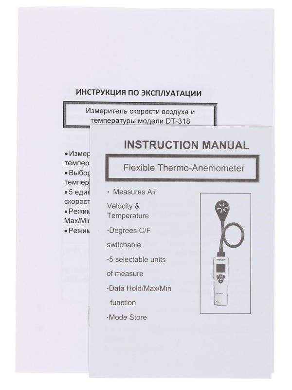 - 1. Анемометр с термодатчиком и гибким зондом CEM DT-318.