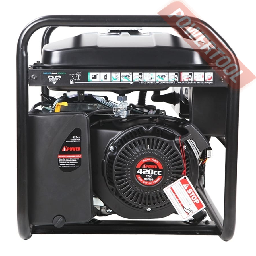Бензиновый генератор A-iPower Lite AP6500 - доступный, надежный и относительно компактный источник энергии, номинальная мощность которого составляет 6 кВт. Модель оборудована силовой розеткой, необходимой для снятия полной мощности и питания высоконагруженных потребителей.