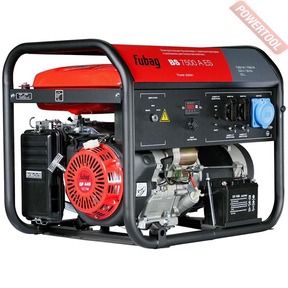 Бензиновый генератор FUBAG BS 7500 A ES обладает номинальной мощностью 7,0 кВт. Подходит для работы с высоконагруженным профессиональным оборудованием или резервированием электропитания в частных домах с большим количеством потребителей электроэнергии.