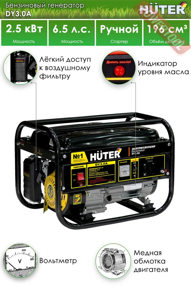- 1. Бензиновый генератор HUTER DY3.0A.