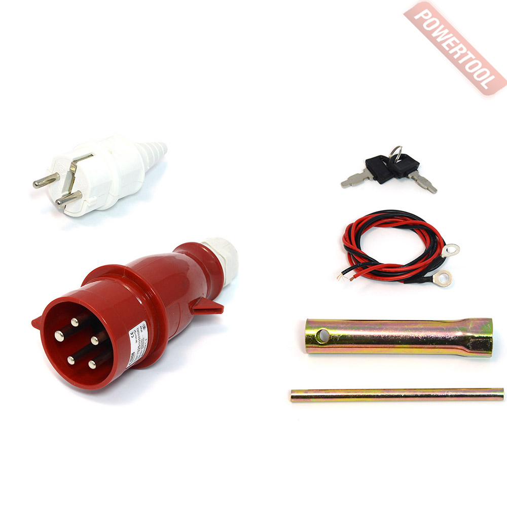 - Розетки: 220В – 16А, 2 шт.(европейского стандарта) и 380В – 32А, 1 шт.( промышленная), что позволяет подключать разные электроинструменты.
