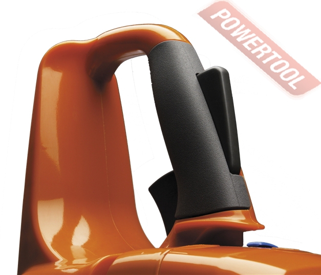 - Эргономичная задняя рукоятка. Повышенный комфорт во время работы обеспечивают мягкие вставки на рукоятках, эргономичный курок газа и ассиметричная по форме рукоятка