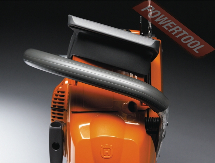 - Защита руки. Дизайн щитка для защиты руки обеспечивает лучший обзор пильной шины и ее звездочки, позволяя полностью контролировать рабочий процесс