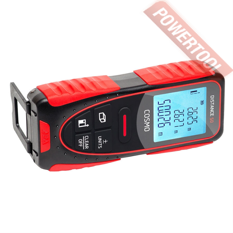 - Дальномер выполняет быстрое сложение и вычитание, а так же производит автоматическое вычисление площади и объема. Для возможности расчета недоступных для прямого измерения отрезков модель оснащена функцией вычисления расстояния между двумя точками по геометрическим формулам Пифагора. Откидная скоба поможет произвести точные измерения из углов и щелей.
