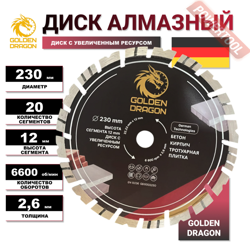 Диск алмазный по бетону 230х22,23 мм GOLDEN DRAGON GD0002230