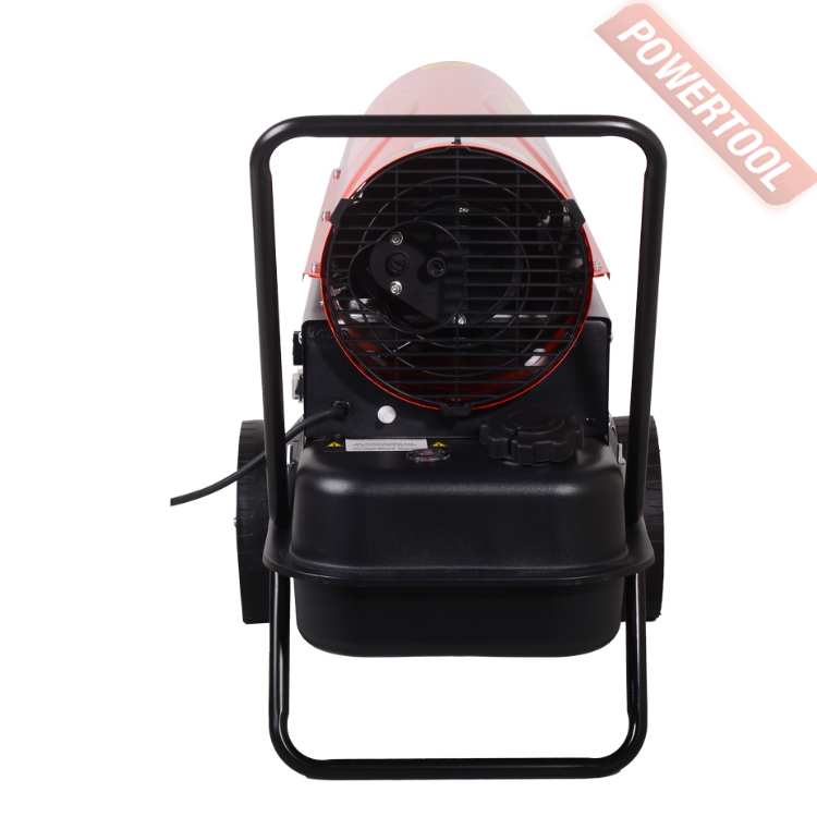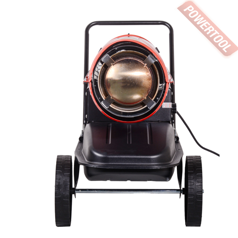 - Транспортировка. По своим характеристикам имеет компактные габариты и вес, что делает ее эргономичной и удобной для перевозки. Колеса и удобная рукоятка позволяют с легкостью перемещать тепловую пушку по объекту.