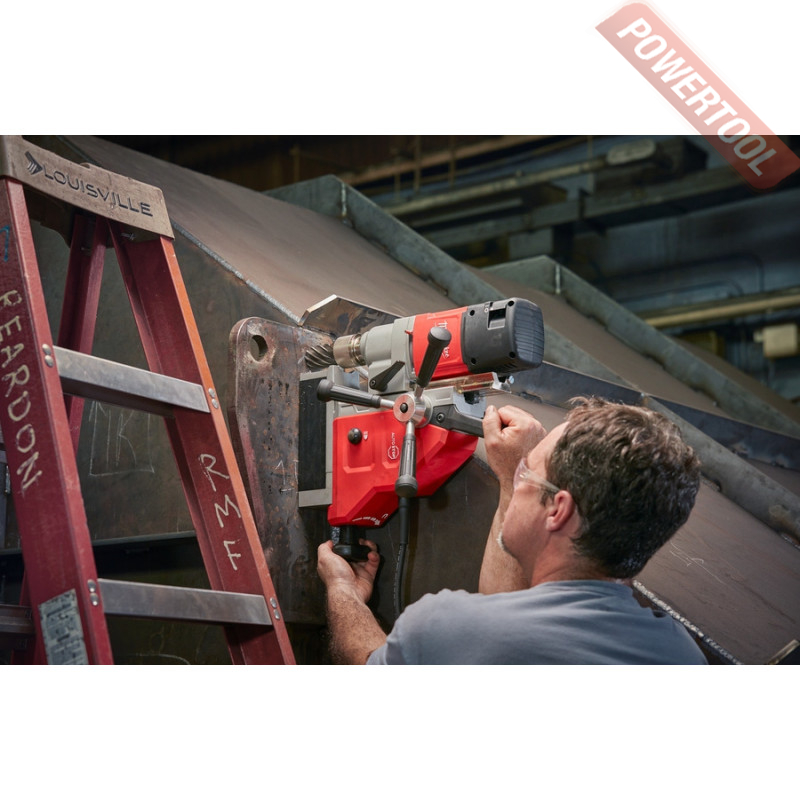 Дрель магнитная MILWAUKEE MDP 41 представляет собой удобную и мобильную систему для сверления различных металлов. Устанавливается на любую металлическую поверхность. Для закрепления используется постоянный магнит. В случае, если его силы недостаточно для удержания станка, срабатывает функция остановки двигателя для защиты оператора. Изделие позволяет максимально эффективно работать в любой плоскости. Рукоятку подачи можно установить на любую сторону станка. Для транспортировки имеется специальный кейс. В него же можно расположить все принадлежности. Имеется подсветка рабочей зоны.