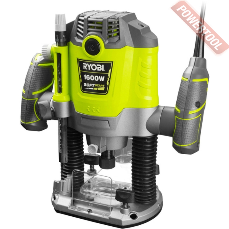 - Большие удобные рукоятки со встроенными выключателем и фиксатором глубины фрезерования