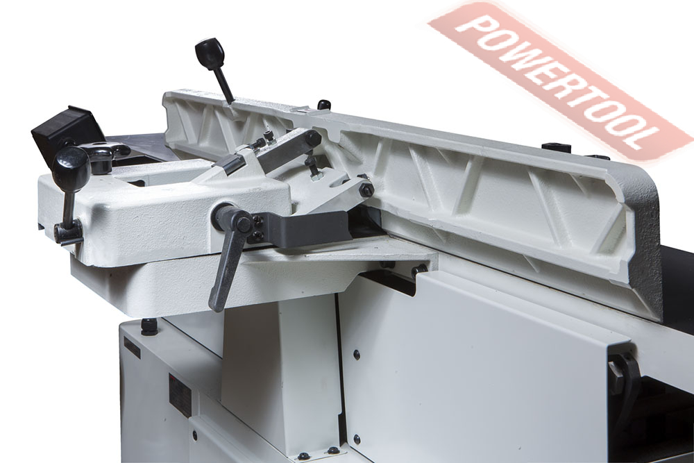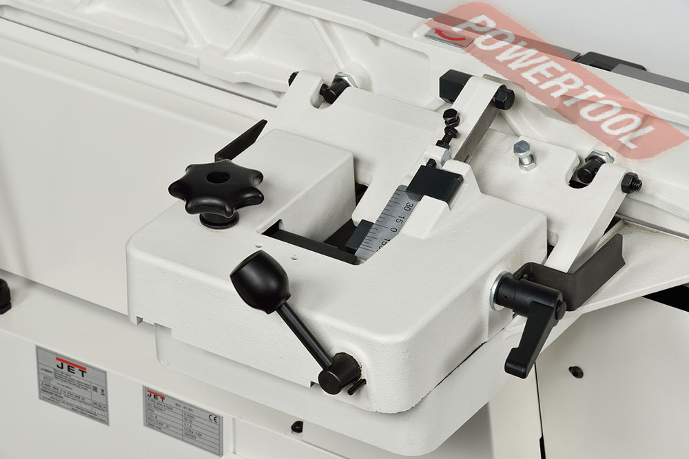 Фуговальный станок JET JJ-866 400В - новый фуговальный станок Jet профессионального класса с шириной строгания 200 мм, оборудован длинными массивными чугунными столами. Может в качестве опции комплектоваться строгальным валом helical, который незаменим при работе с твердыми породами, по древесине с сучками и просто при интенсивной эксплуатации. Отличительная особенность новинки – параллелограммный механизм регулировки высоты столов. В сегменте компактного оборудования такая схема получила распространение сравнительно недавно и пока еще более характерна для тяжелого промышленного оборудования. Вместо наклонных скользящих направляющих в ней используются рычаги на осях, нет ни винтов, ни эксцентриков, а усилие от рукоятки прикладывается непосредственно на сторону параллелограмма. Внутреннее трение и люфты в такой конструкции минимальны, что позволяет при настройке перемещать тяжелые столы (регулируются оба: и приемный, и разгрузочный) с наименьшими усилиями и максимально точно. Станок укомплектован массивным чугунным фуговальным упором с регулировочным механизмом червячного типа. Он обеспечивает точную и жесткую установку угла наклона в диапазоне от прямого положения до 45 градусов влево или вправо. Современный, точный и эргономичный фуганок, предназначенный в первую очередь для профессионалов, но будет иметь спрос и у любителей работы с деревом.