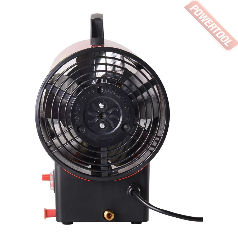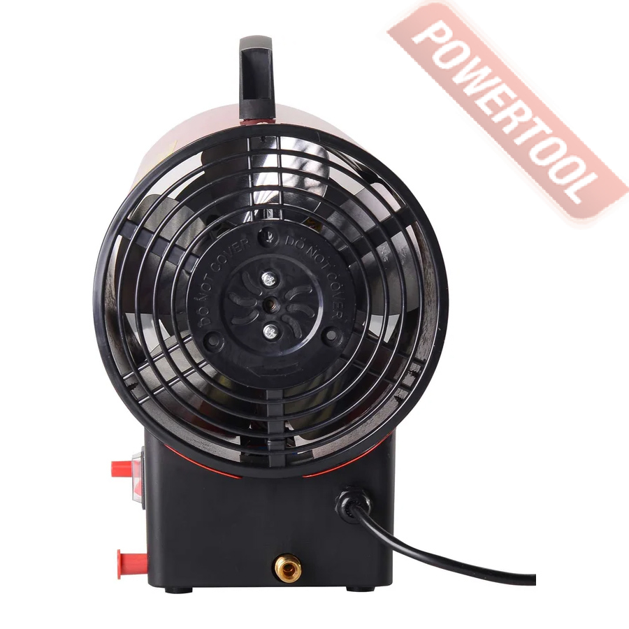 • Нагнетательный осевой вентилятор. Он создает воздушный поток, который выходит через рабочее сопло уже нагретый в теплообменнике прямого типа. Работает от сети 220 В потребляя немного энергии. Электродвигатель вентилятора имеет защиту от перегрева и скачков напряжения сети.
