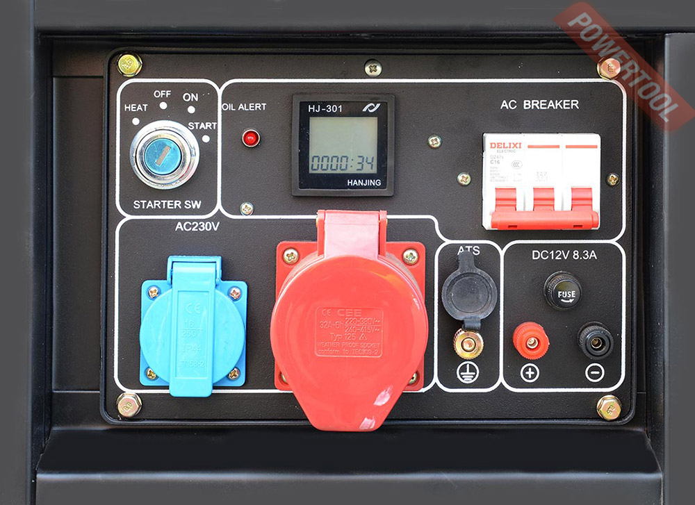 - На рабочей панели установлен вольтметр и счетчик моточасов, где отображаются часы работы дизельного генератора,