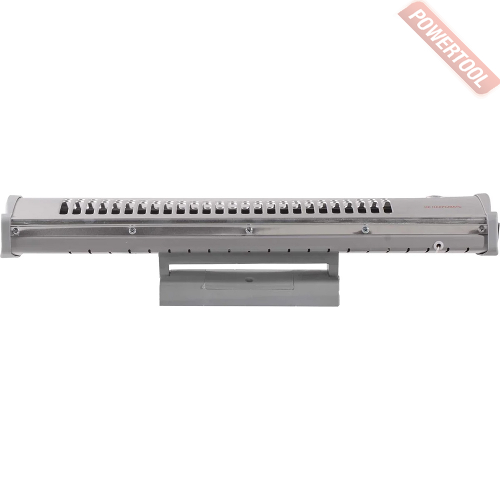 Инфракрасная тепловая пушка электрическая, напряжение сети 220 В, тепловая мощность 0,6/1,2 кВт, потребляемая мощность 1200 Вт, два режима работы, датчик перегрева, нагревательный элемент в виде кварцевой трубки, возможность крепления на стену, угол наклона 60 градусов, габариты ДхШхВ 130х570х160 мм, вес 1,4 кг, комплект крепежа.