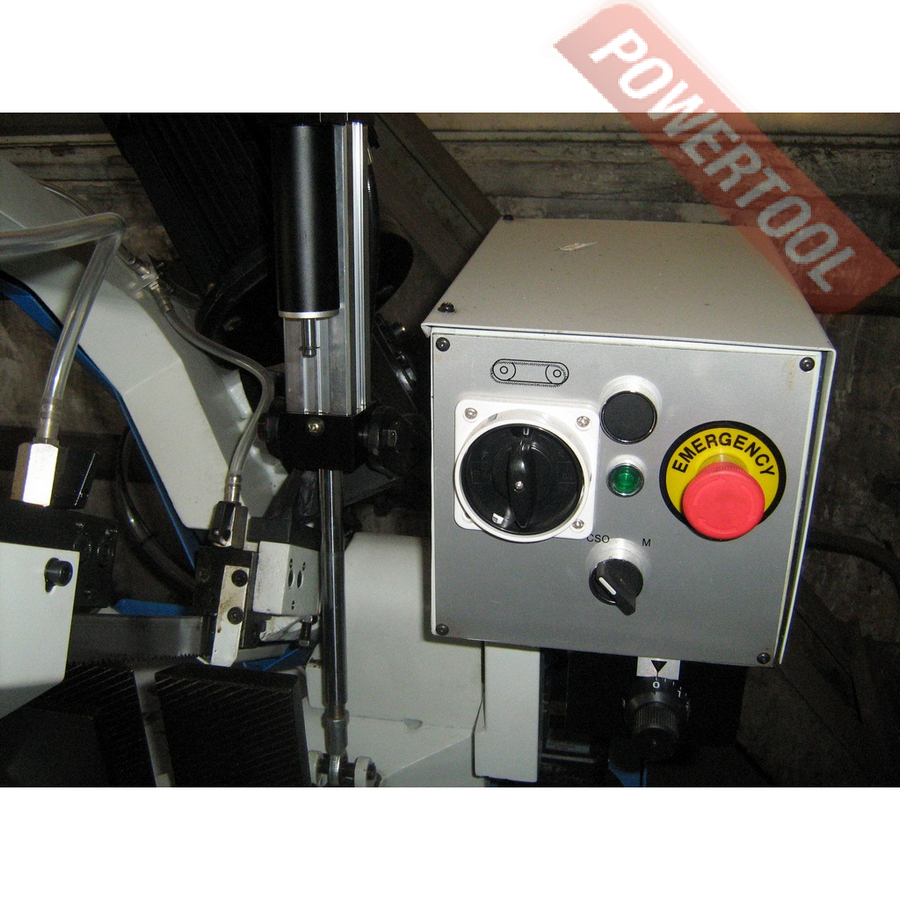 Ленточная пила по металлу METAL MASTER PT-220 служит для распила профилей, прутьев, и других металлических изделий продольной формы. Пильный узел и тиски имеют возможность поворота, что позволяет выполнять пропилы под углами 45, 60 м 90 градусов. СОЖ (смазочно-охлаждающая жидкость) служит для длительной работы: жидкость подается в место пропила, при этом охлаждается полотно и заготовка. Плавная подача пильного узла осуществляется оператором и позволяет полностью контролировать глубину пропила.