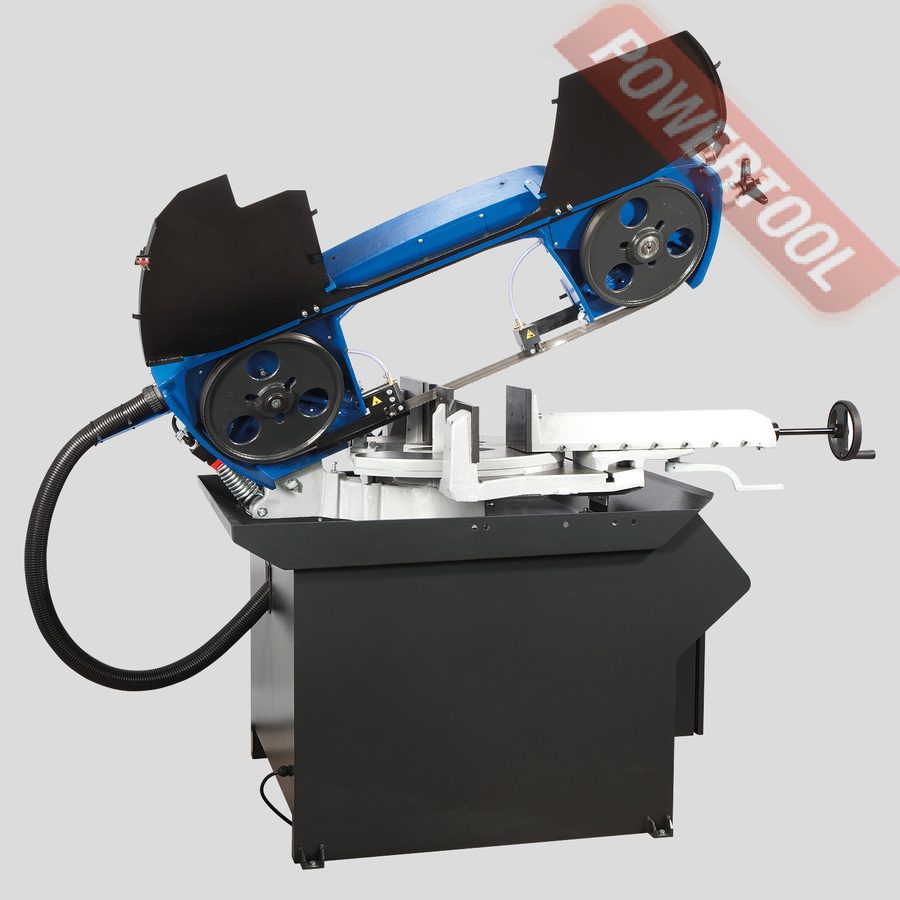 - Тиски. Используя данную модель имеющую быстрорегулируемые тиски для резки под углом, поворачивается рама, а не заготовка. Тиски с системой быстрого отвода ускоряют процесс смены заготовки (ускоренный отвод подвижной губки происходит без вращения маховика). Зажим заготовки осуществляется тисками вручную, подача заготовки - также вручную.