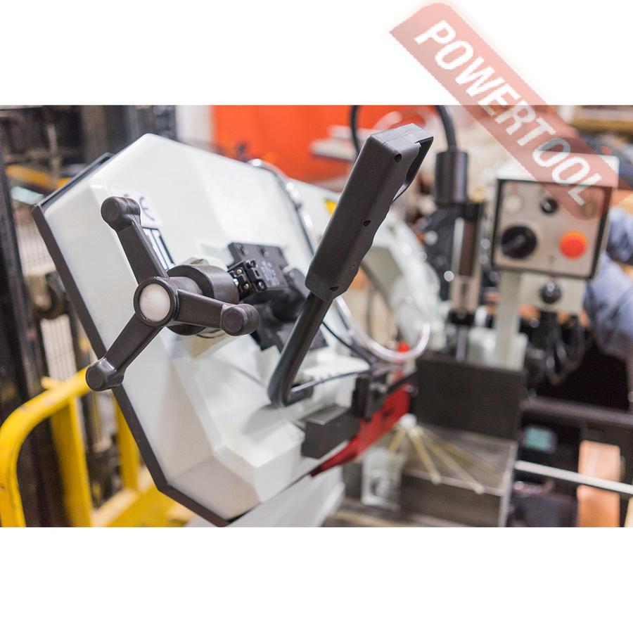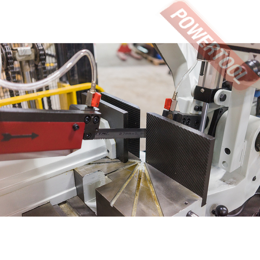 Используя данную модель, имеющую тиски для резки под углом, поворачивается рама, а не заготовка. Зажим заготовки осуществляется тисками вручную, подача заготовки - также вручную. Наличие система СОЖ в стандартной комплектации – позволяет добиться высокой производительности.