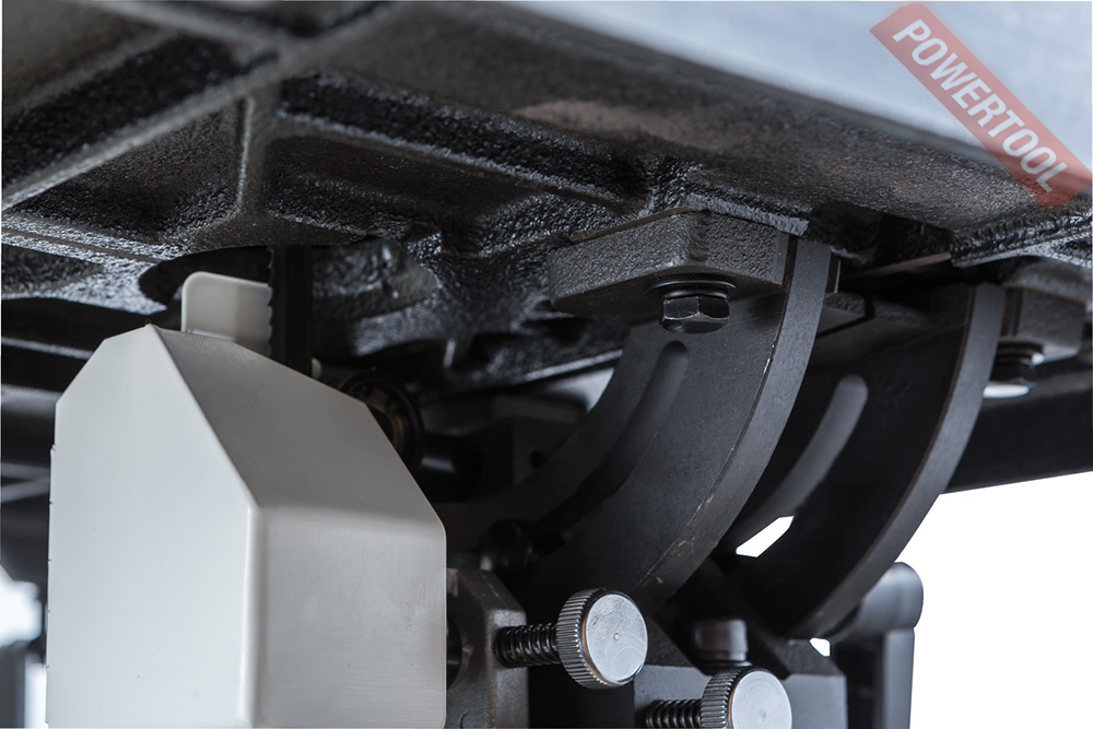 Рабочий стол чугунный, поворотные сегменты, на которые он опирается, из этого же материала. Наклон производится при помощи зубчатого механизма вращением рукоятки и возможен в обе стороны (на 5° в сторону станка и на 45° от него). Для наибольшей эффективности пылеудаления установлено два 100-миллиметровых патрубка: один под рабочей поверхностью, второй в нижней части корпуса.