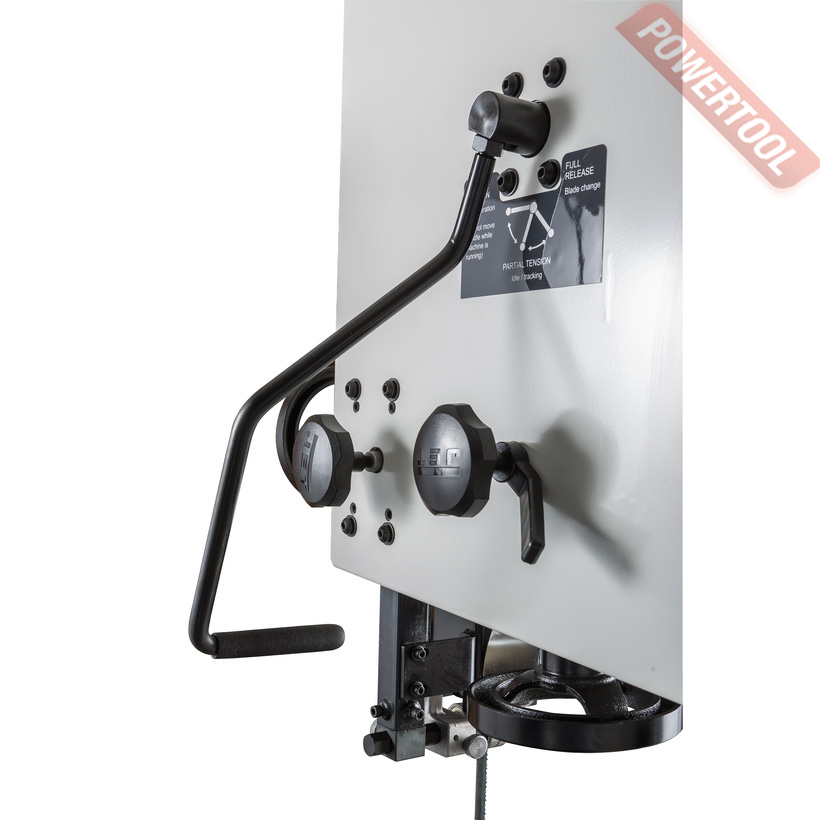 Ленточнопильный станок по дереву JET JWBS-15-T 380V - ленточная пила нового поколения, предназначенная для профессионального использования. Ее основное преимущество, на фоне аналогов прошлых поколений, - увеличенная высота распиловки. Этот параметр очень важен для тех, кому нужен универсальный станок, способный взять на себя функции делительного. К подобным работам приспособлен и параллельный упор: направляющий профиль можно установить вертикально на боковую грань так, чтобы надежно фиксировать плоские заготовки при их роспуске на тонкие пластины. В целом конструкция бокового упора очень хорошо проработана и соответствует самым строгим требованиям: профиль жесткий и прочный, закреплен на массивном чугунном кронштейне, который перемещается по цилиндрической направляющей. Предусмотрена грубая (вручную) и точная (микрометрическим винтом) установка.