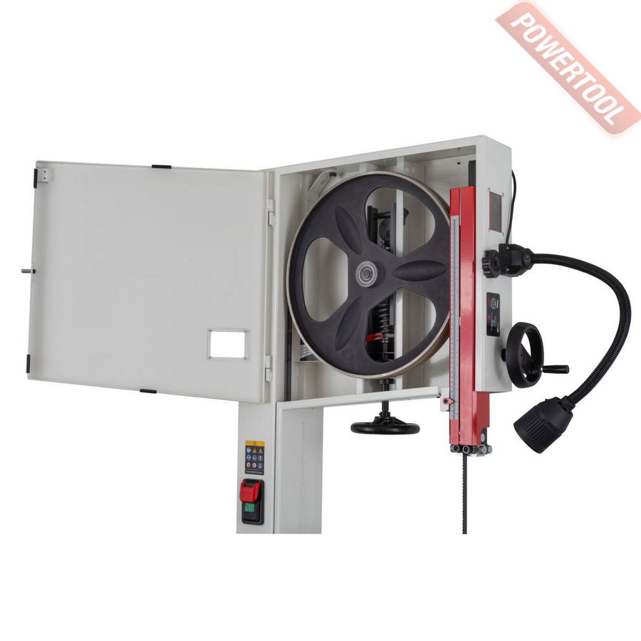 Ленточная пила по дереву, 2800 Вт, 380 В, мах высота реза 406 мм, мах ширина реза 475 мм, длина полотна 3810 мм, ширина полотна 3-32 мм, скорость 780 м/мин, рабочий стол 508х692 мм, наклон стола от -5 до 45 градусов, вытяжной штуцер 100 мм, подсветка рабочей зоны, размер ДхШхВ 870х965х2015 мм, вес 184 кг, полотно 3810х13х0,55 мм, параллельный упор.