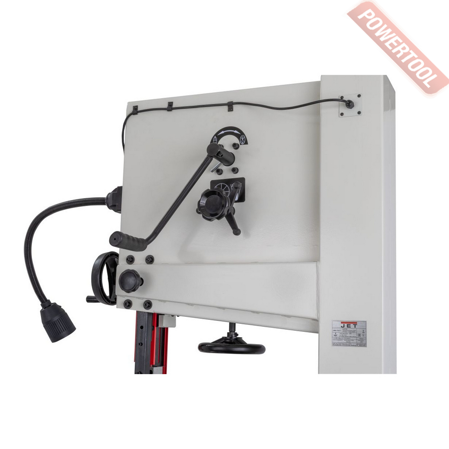 Ленточнопильный станок по дереву JET JWBS-18SFX-T 380V - новая ленточная пила для профессионального применения. Ее характеризуют несколько основных преимуществ. Это мощная, полностью сварная рама, большой чугунный, высокоточный рабочий стол, чугунные приводные шкивы компьютерной балансировки, возможность установки пильных полотен шириной вплоть до 32 мм, система тормозов мгновенной, аварийной остановки пиления, быстрое ослабление пильного полотна для его замены. Все это очень важно тем, кому нужен универсальный, профессиональный станок. JWBS-18SFX может работать сутками напролет. Параллельный упор тоже объединяет несколько преимуществ. Направляющий профиль может быть установлен в обеих плоскостях, вертикально или горизонтально. Это позволит с комфортом работать над высокими и совсем тонкими заготовками. Высота самого профиля обеспечит комфорт при пилении больших деталей. Квадратная, толстостенная труба в основе направляющей даст нужную жесткость конструкции упора целиком.