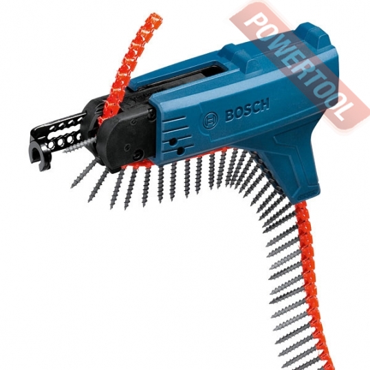 - Для серийного завинчивания: магазин-насадка MA 55 Professional. Для более эффективного серийного завинчивания шурупов Bosch предлагает специальную принадлежность к GSR 6-25 TE и GSR 6-45 TE Professional — магазин-насадку MA 55 Professional. Он совместим со всеми распространенными шурупами в лентах и позволяет производить заворачивание с очень высокой скоростью. Эргономичная конструкция и небольшой вес обеспечивают комфортную работу даже при длительном применении. Открытая компоновка позволяет избежать попадания пыли в инструмент, что значительно продлевает срок службы. Кроме этого, установка насадки происходит без использования дополнительного инструмента. С магазином совместимы ленты с шурупами длиной от 25 до 55 мм максимальным диаметром 5 мм и диаметром шляпки до 9,5 мм.