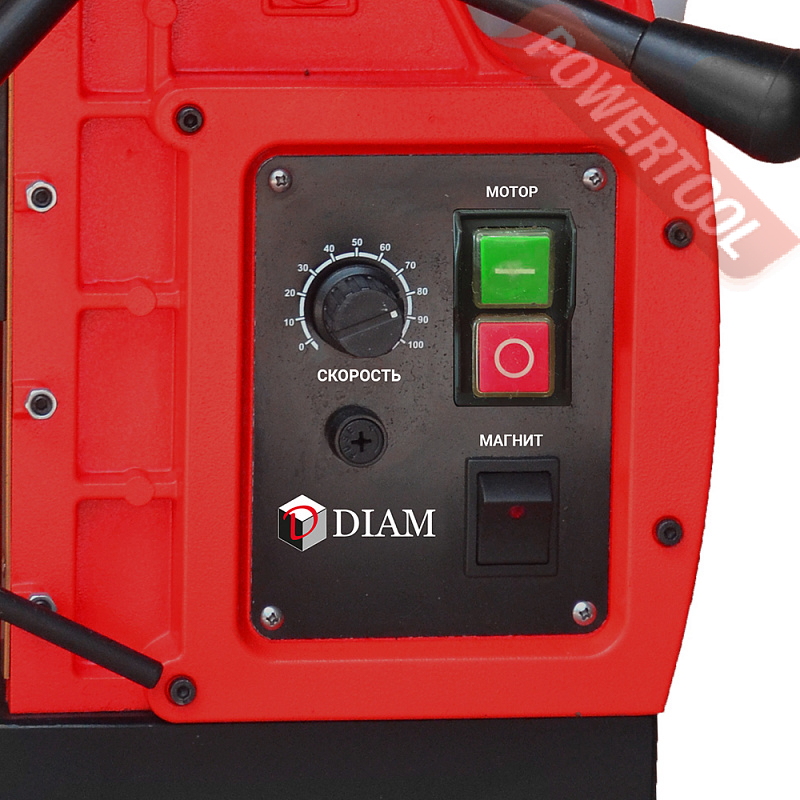 Магнитный сверлильный станок DIAM EX-98E является профессиональным оборудованием и применяется при работе на производствах в цехах, мастерских, строительных объектах. Станок предусмотрен для сверления глухих и сквозных отверстий в различных металлических материалах с помощью корончатых и спиральных сверел.