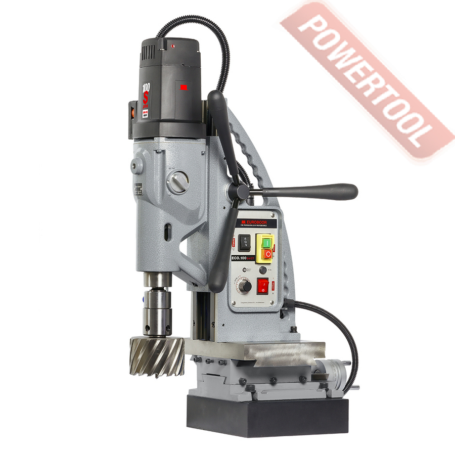 Магнитный сверлильный станок EUROBOOR ECO.100S Plus/CT прорезает отверстия диаметром до 100 мм и особенно подходит для нарезания резьбы и мягкого фрезерования. Подвижное основание дает вам возможность позиционировать станок с высокой точностью в диапазоне 110 мм (ось X) и 120 мм (ось Y) после того, как магнит уже прикреплен к поверхности. Благодаря динамическому позиционированию во время процедуры сверления этот станок также можно использовать для мягкого фрезерования.
