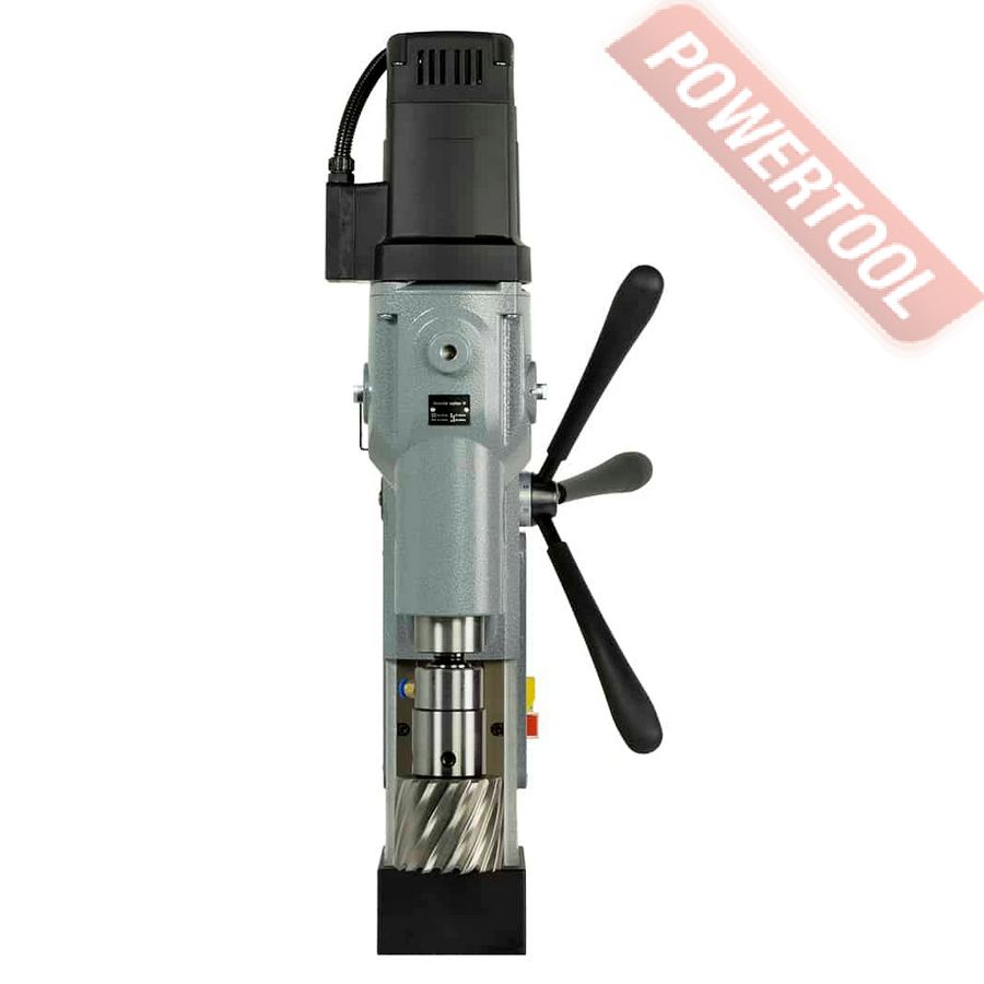 Магнитный сверлильный станок, 1900 Вт, 220 В, max диаметр корончатого сверла 80 мм, max диаметр спирального сверла 31,75 мм, конус шпинделя КМ 3, крепление корончатого сверла на Weldon 32, ход шпинделя 260 мм, частота вращения шпинделя 200/320/415/650 об/мин, 4 скорости, прижимная сила 29420 Н, размер магнитного основания ДхШ 220х110 мм, габариты ДхШхВ 365х310х710 мм, вес 28 кг, регулировка оборотов, система подачи СОЖ, в комплекте патрон КМ 3/Weldon 32, адаптер Weldon 19/Weldon 32, система СОЖ, кожух защиты зоны сверления, рукоятки 3 шт, страховочная цепь, набор шестигранных ключей 2.5, 4, 5 мм, клин, кейс.