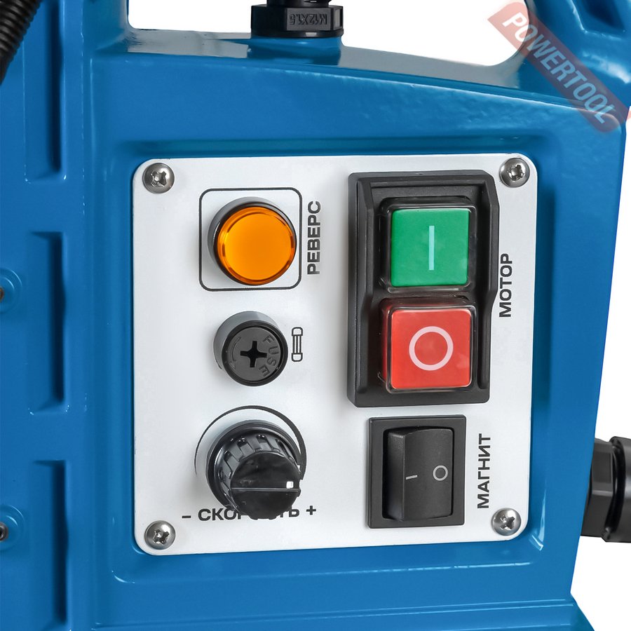- Направляющие типа «двойной ласточкин хвост» позволяют перемещать и закреплять привод в любом положении для работы с длинными спиральными сверлами или сверления ниже уровня основания станка.