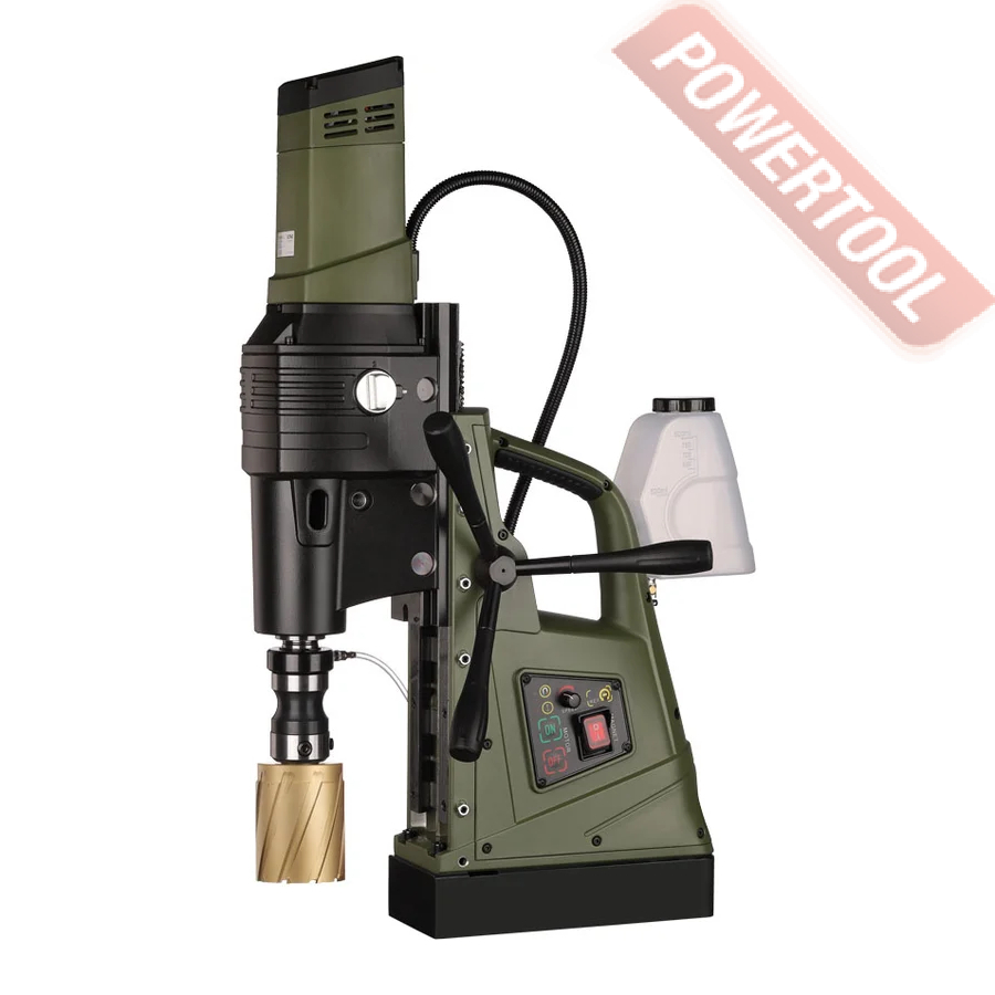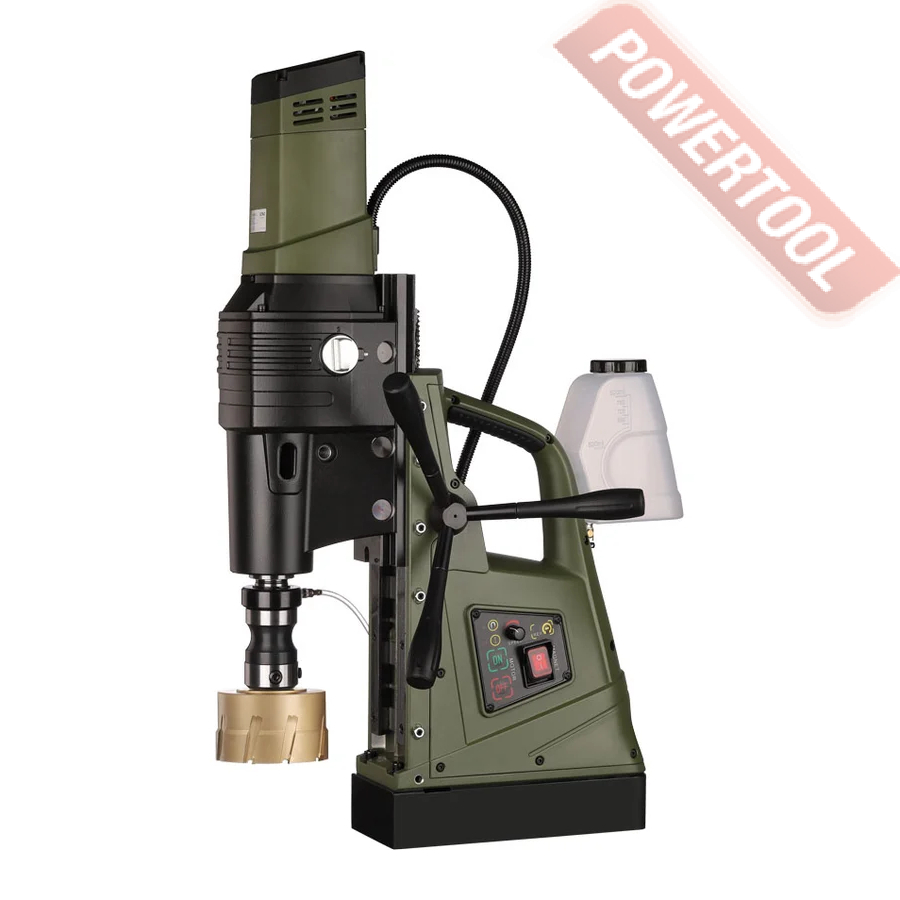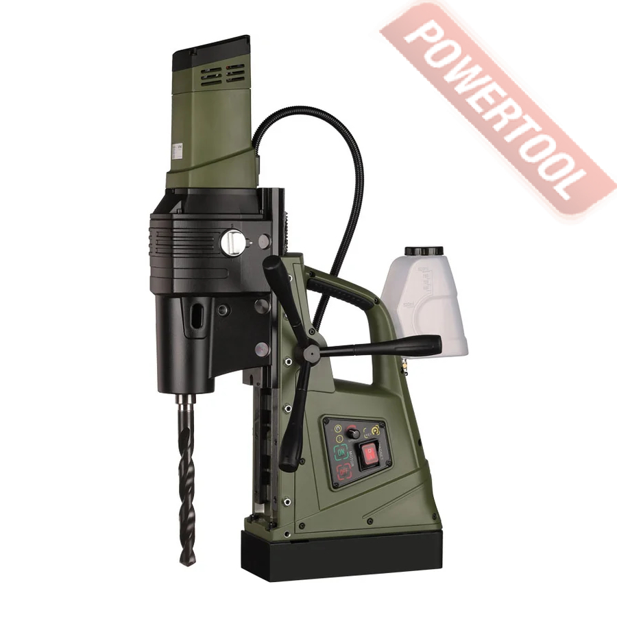 Магнитный сверлильный станок, 2500 Вт, 220 В, max диаметр корончатого сверла 125 мм, max диаметр спирального сверла 42 мм, конус шпинделя КМ 4, крепление корончатого сверла на Weldon 32, ход шпинделя 220 мм, max нарезаемая резьба M33, частота вращения шпинделя 80/125/175/300 об/мин, 4 скорости, прижимная сила 20000 Н, размер магнитного основания ДхШ 280х115 мм, габариты ДхШхВ 440х250х580 мм, вес 36,5 кг, реверс, регулировка оборотов, система подачи СОЖ, в комплекте патрон КМ 4/Weldon 32, система охлаждения, страховочный ремень, 3 ручки подачи привода, 3 шестигранных ключа 2.5, 5 и 6 мм, клин, кейс.