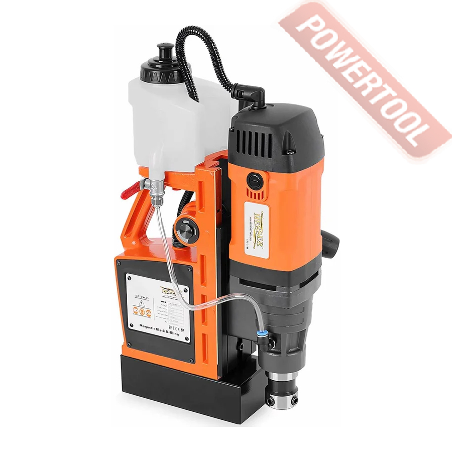 Возможность выполнения точных и качественных, не требующих дополнительной обработки отверстий диаметром до 50 мм в металле максимальной толщины 40 мм обеспечивается за счет применения кольцевых сверл из быстрорежущей инструментальной стали (HSS) или сверл с твердосплавными напайками (ТСТ). Для качественного сверления и сохранения ресурса кольцевых сверл, в сверлильном станке MESSER MDM-42 предусмотрена регулируемая подача смазочно-охлаждающей жидкости (СОЖ) в зону сверления. Надежную фиксацию и точность засверливания обеспечивают электромагниты, находящиеся в магнитном основании станка и позволяющие проводить сверлильные работы под разными углами.
