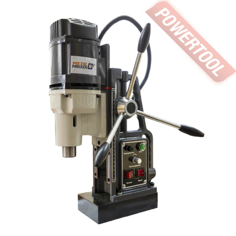 Магнитный сверлильный станок METAL MASTER MDM-50E предназначенный для обработки резанием заготовок из конструкционных материалов (сталей, чугунов, сплавов цветных металлов). Данное оборудование применяется для сверления и рассверливания отверстий в труднодоступных местах, экстремальных и полевых условиях. Конструктивной особенностью данного класса станков является электромагнитное основание необходимое для надёжной фиксации станка на заготовке в различных положениях (в том числе горизонтальном и перевернутом).