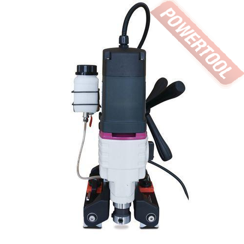 Магнитный сверлильный станок, 1700 Вт, 220 В, max диаметр корончатого сверла 50 мм, max диаметр спирального сверла 13 мм, крепление корончатого сверла на Weldon 19, ход шпинделя 230 мм, частота вращения шпинделя 20-280/20-510 об/мин, 2 скорости, прижимная сила 6500 Н, размер магнитного основания ДхШ 186х40 мм, габариты ДхШхВ 340х250х430 мм, вес 11,7 кг, плавная регулировка оборотов, система подачи СОЖ, возможность фиксации на трубах, в комплекте система охлаждения, предохранительная цепь, рукоятка подачи 3 шт, набор ключей, кейс.