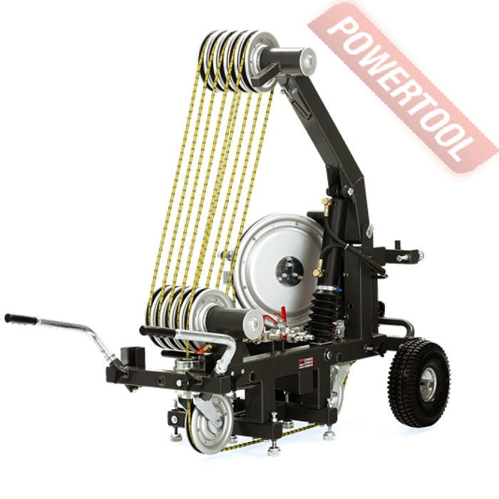 Машина для канатной резки, мощность 20 кВт, работает вместе с гидравлической станцией HUSQVARNA PP 455 Е, давление 230 бар, расход масла 65л/мин, управление авто, минимальная длина каната 15 м, емкость магазина для каната 12 м, вес 150 кг.