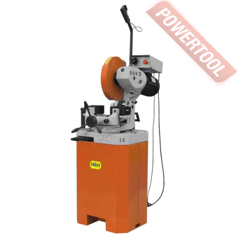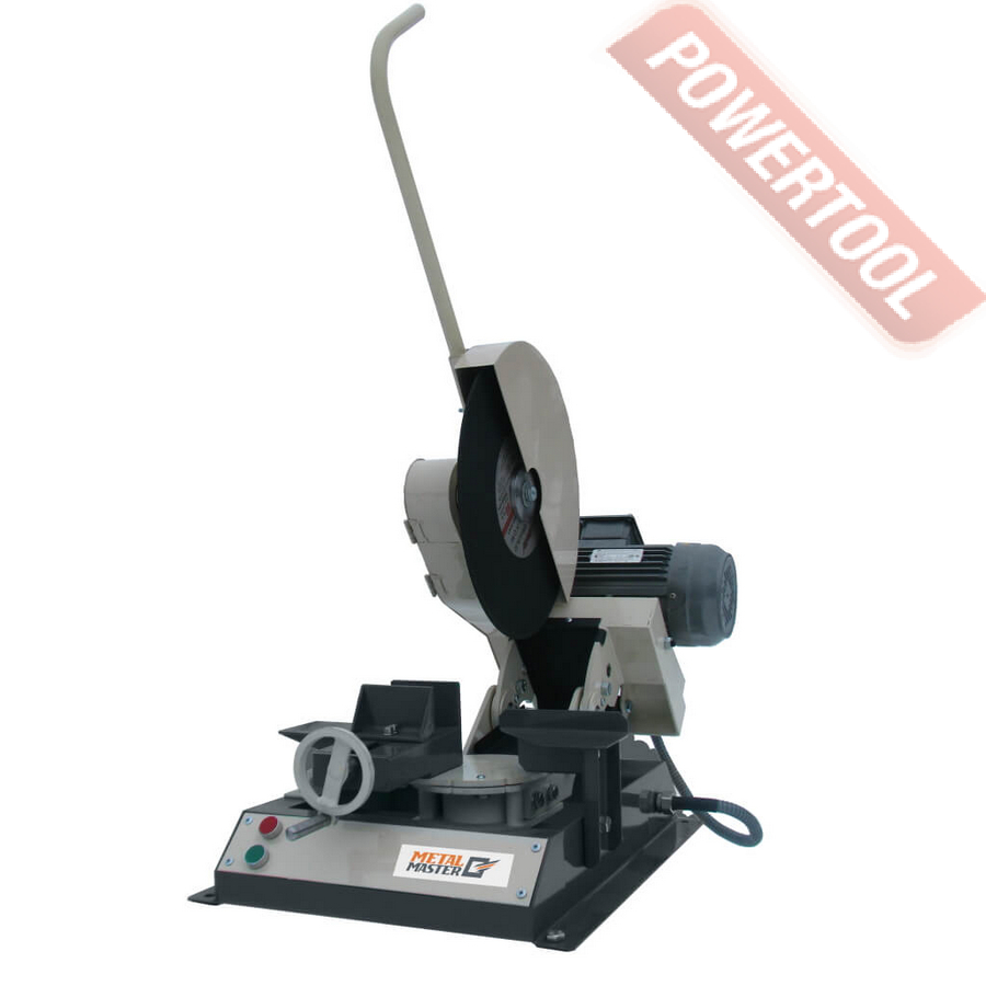 Отрезной станок имеет быстрозажимные тиски, позволяющие выполнять быструю установку однотипных заготовок. Для серийных работ, при частом повторении однотипных операции в конструкции станка предусмотрен концевой упор, регулирующий необходимую длину заготовок. Станок имеет на оснащении мощный электродвигатель 920 Вт, способный обеспечить скорость вращения пильного диска 42 об/мин. Управление работой двигателя осуществляется оператором с помощью регулятора скорости вращения. Двигатель оборудован кнопкой аварийной остановки двигателя.