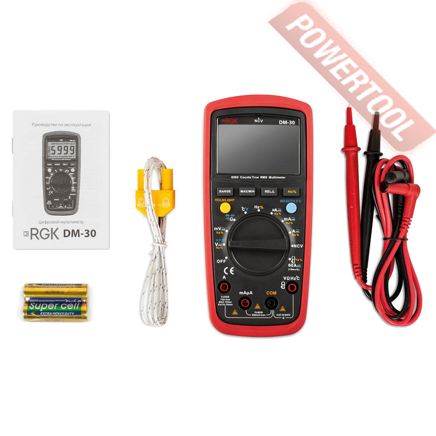 • 1. Мультиметр цифровой с поверкой RGK DM-30.