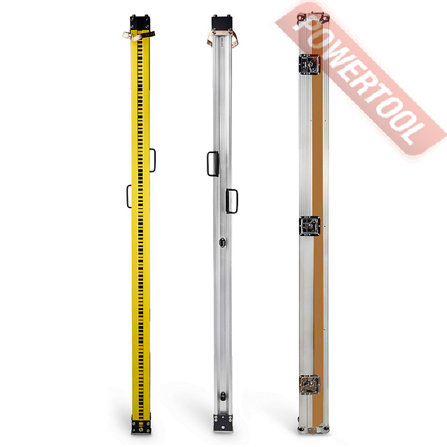Верхняя и нижняя пятки рейки выполнены из твёрдой стали, что позволяет сохранять их целостность и качество измерений на протяжение долго времени. Для удобства переноски на корпусе реек предусмотрены складные ручки. Углы и грани футляра усилены металлическими накладками, что обеспечивает улучшенную защиту от случайных ударов.