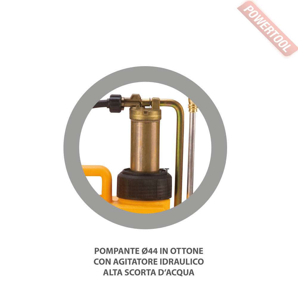 • Надежный латунный насос с гидравлической мешалкой - постоянное перемешивание раствора.