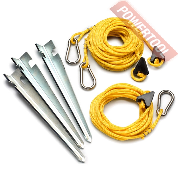 - Гарантированная безопасность. Комплект для натяжения входит в объем поставки. Тросы просто закрепляются на верхней части штатива и могут быть комфортно натянуты после фиксации на грунте. Грунтовые гвозди отличаются особой прочностью и обеспечивают стабильное крепление в практически любом виде грунта