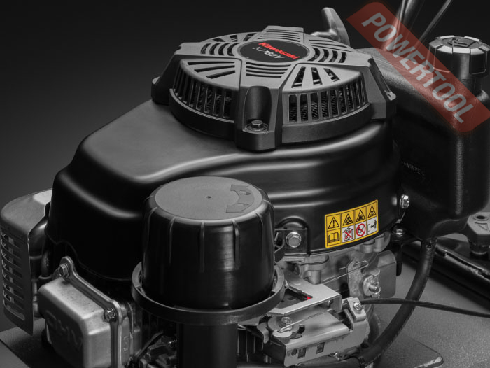 - Четырехтактный бензиновый двигатель Kawasaki FJ180V. Износостойкий мотор, компактный и легкий, с верхним расположением клапанов и чугунной гильзой цилиндра. Ручной стартер с системой автоматической декомпрессии облегчает пуск. Двойной воздушный фильтр обеспечивает надежную фильтрацию, особенно в условиях высокой запыленности.