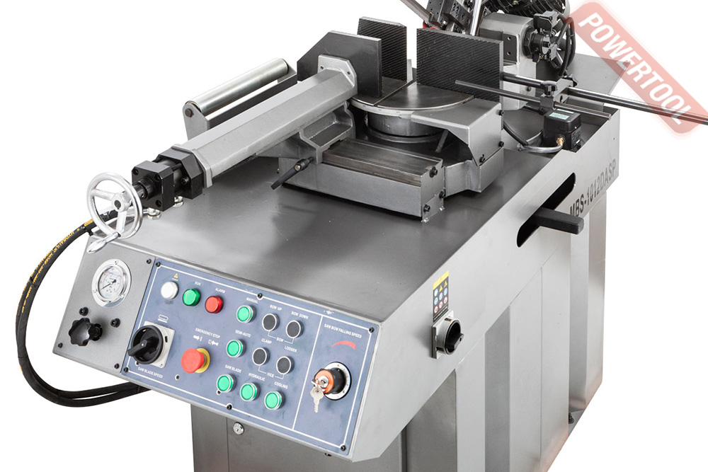 Модель MBS-1012DASP имеет регулируемую направляющую для регулировки прохода ленточного полотна в зависимости от формы заготовки и ее диаметра. Направляющие блоки осуществляют позиционирование полотна непосредственно под прямым углом к поверхности обрабатываемой заготовки. Максимальная стойкость ленточного полотна обеспечивается подачей СОЖ в зону резания. Вес станка в полном снаряжении составляет 410 кг.