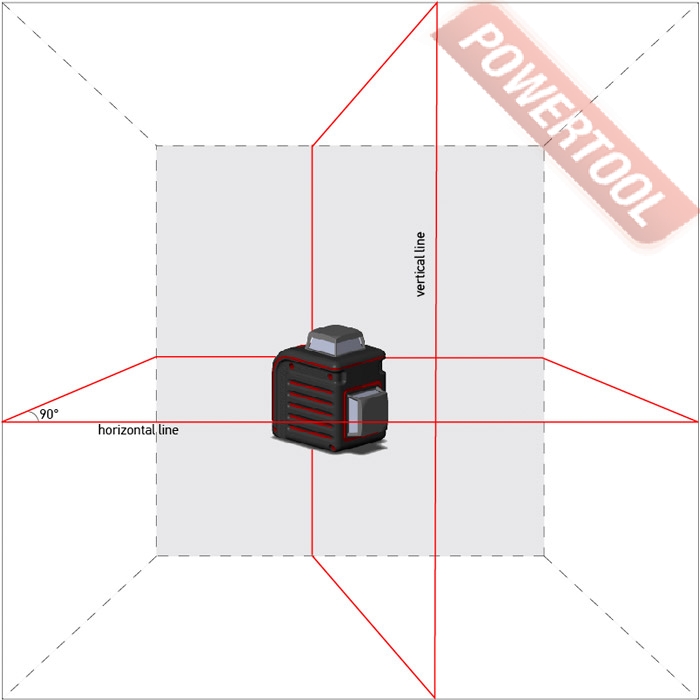 - Удобная разметка. Уровень проецирует горизонтальную и вертикальную линии на 360º. При включении вертикальной линии получаются две перекрещивающиеся под углом 90º проекции (лазерный крест). Эти лазерные кресты можно использовать для переноса точек, например, с одной стены на другую