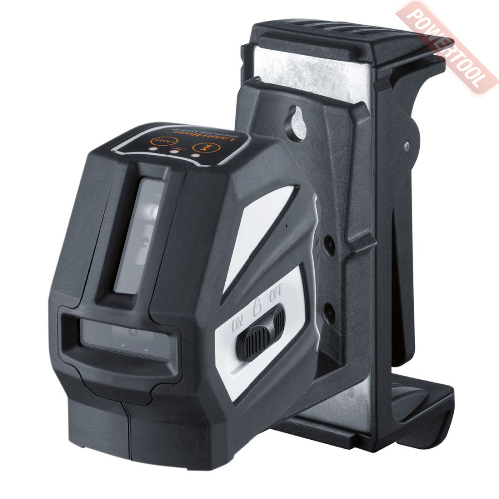 - Построение лазерных линий. Cтроит лазерный крест, либо горизонталь или вертикаль по отдельности - в зависимости от выбранного режима. Угол горизонтальной развёртки 160 градусов, вертикальной - 160 градусов. При включении прибора автоматически активируется лазерный крест. Переключение между режимами осуществляется при помощи кнопки на верхней панели прибора.