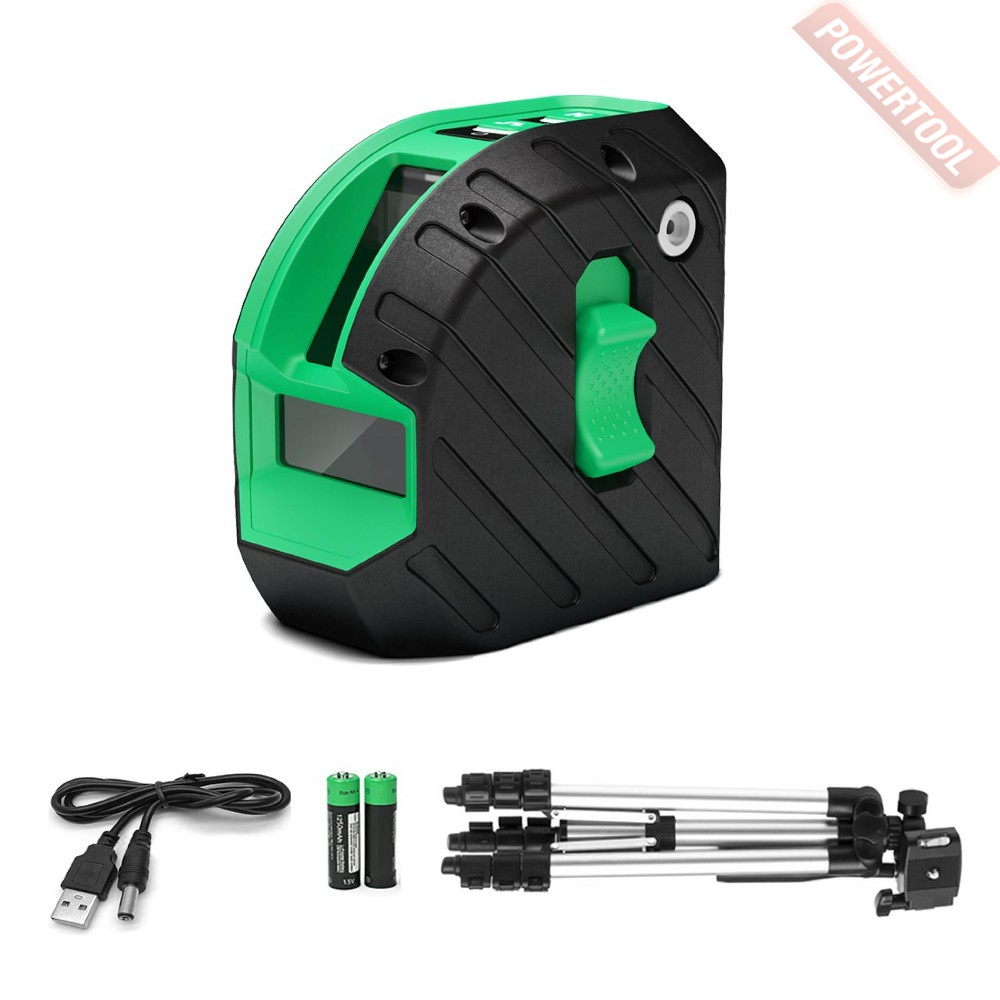 • Построение лазерных линий. Cтроит лазерный крест, либо горизонталь или вертикаль по отдельности - в зависимости от выбранного режима. Угол горизонтальной развёртки 360 градусов, вертикальной - 160 градусов. При включении прибора автоматически активируется лазерный крест. Переключение между режимами осуществляется при помощи кнопки на верхней панели прибора.