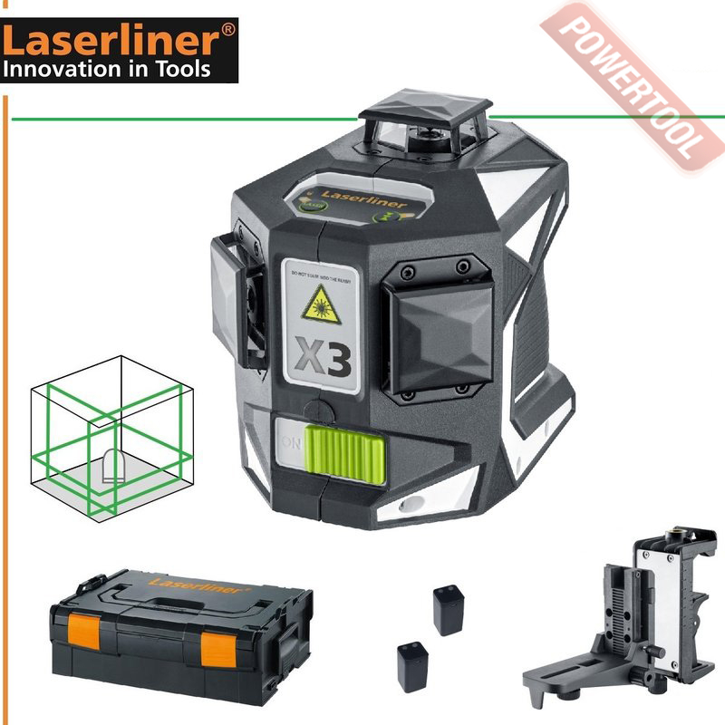 Построитель лазерных плоскостей LASERLINER X3-Laser Pro - трехмерный лазерный нивелир с 3 зелеными лазерными окружностями 360 градусов каждая, магнитным зажимом и настенным кронштейном. Предназначен для проецирования линий с дальнейшей разметкой при монтажно-строительных работах. Отлично подходит для любых небольших строительных объектов. Оптимизирован для работ вблизи потолка. Благодаря ярким лучам и самонивелирующемуся лазерному уровню обеспечивается высокая четкость проекций и точность разметки.