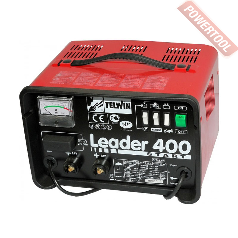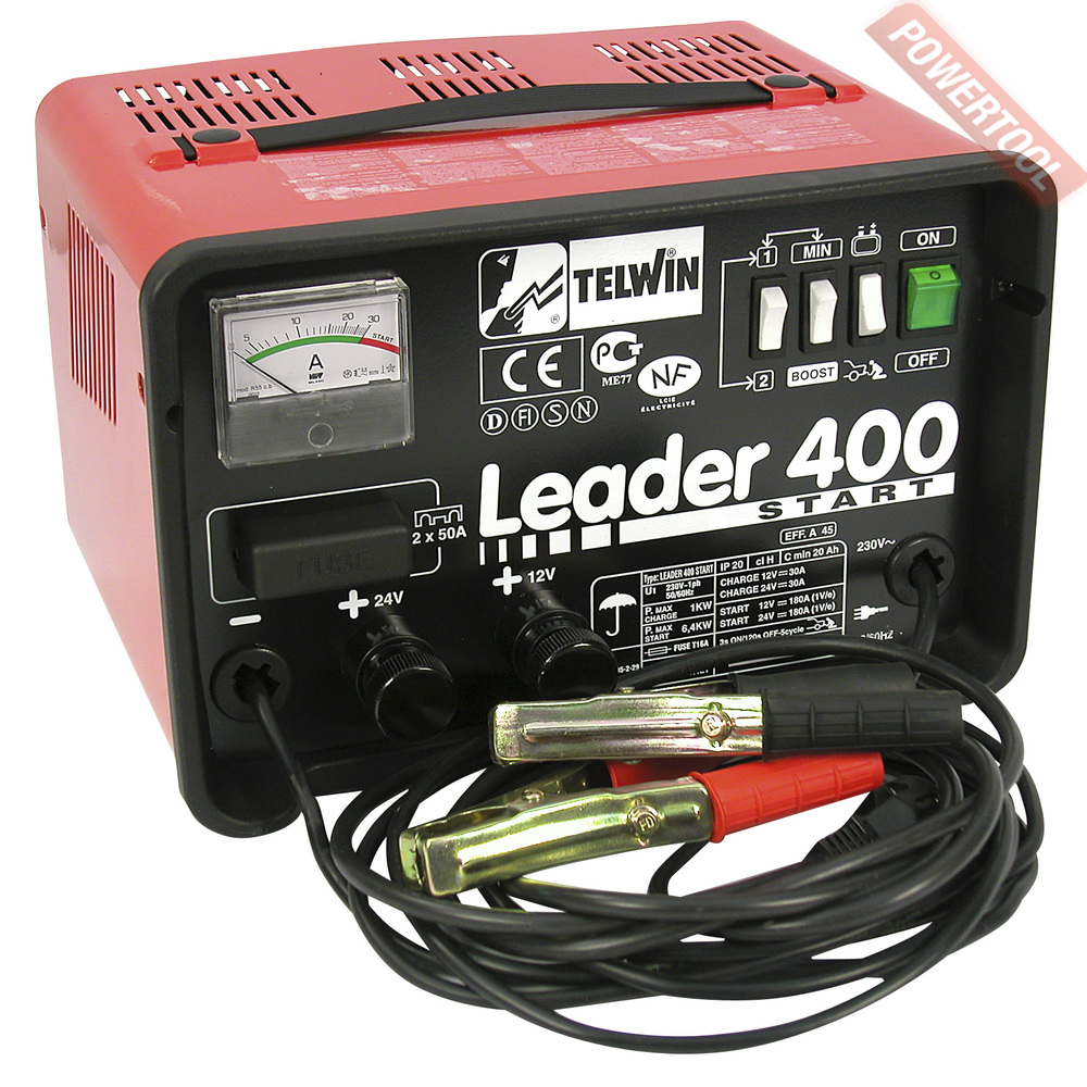 Пуско-зарядное устройство TELWIN Leader 400 Start предназначено для зарядки аккумуляторов со свободным электролитом (WET) с напряжением 12/24 В, а так же для запуска двигателя. Подходит для пуска всех типов транспортных средств с бензиновыми двигателями, а так же запуска дизельного двигателя до 70 л.с. Имеется переключатель для выбора режима нормальной и ускоренной зарядки. Система быстрого пуска. Индикация зарядного и пускового тока.
